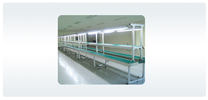 기판, 전기, 전자의 정밀부품 및 CLEAN ROOM의 제조, LINE, 조립, 검사, 포장LINE, 과자류, 육류, 야채, 어류 등의 운반에서 가공, 포장 LINE 의약품관련의 제조, 검사, 포장 LINE PLASTIC 성형기에서 추출 및 자동화 LINE간의 통로가 있는 경우, 천정위로의 운반이 필요한 LINE 수분건조, 분말, 미립체 이송 LINE 기타 여러가지 소형 경량 이송 |